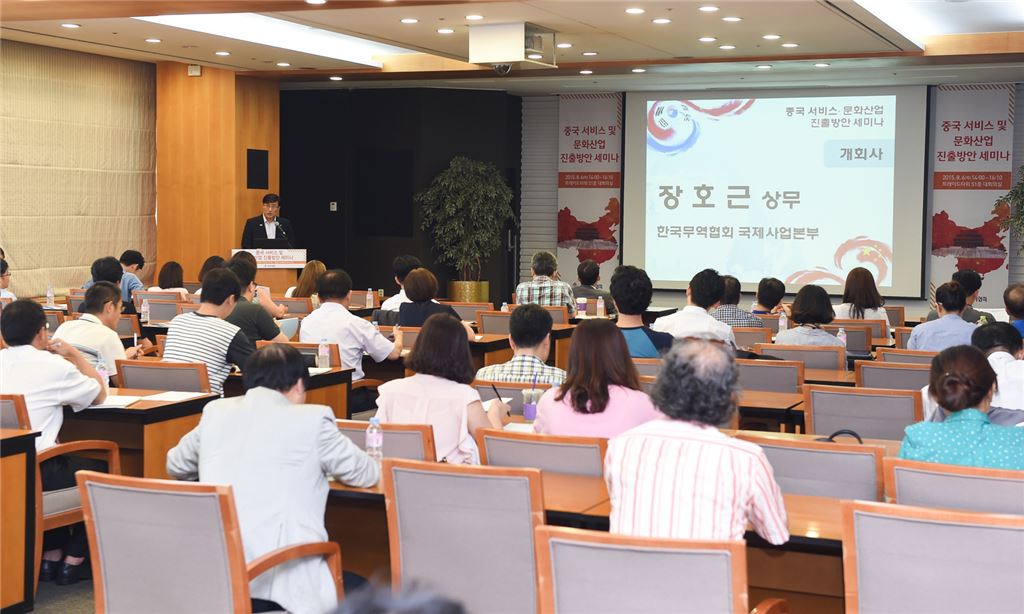 6일 삼성동 트레이드타워에서 개최된 '중국 서비스·문화산업 진출방안 세미나'에서 무협 장호근 국제사업본부장이 개회사를 하고 있다.<br />