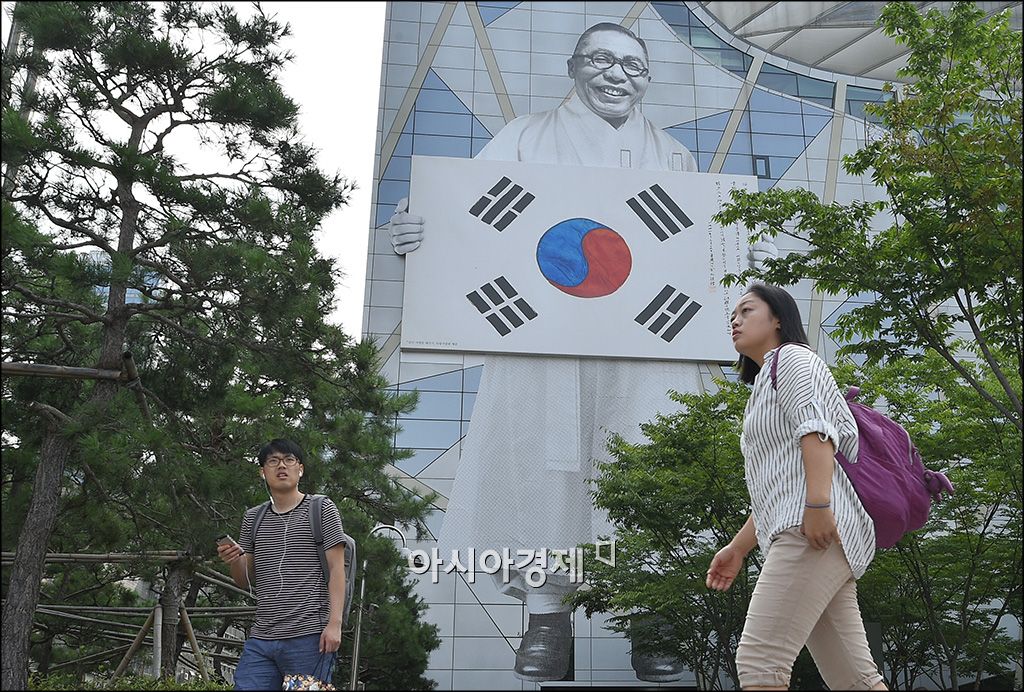 [아시아경제 윤동주 기자] 광복 70주년을 앞두고 7일 서울서청 외벽이 대형 김구 선생이 '서명문 태극기'를 들고 있는 이미지로 교체되어 있다. 김구 선생이 들고 있는 '서명문 태극기'는 오는 10월까지 전시할 예정인 김구 선생이미지는 1941년 중국 상하이에서 임시정부를 이끌던 선생이 미국으로 떠나던 벨기에 신부 매우사(梅雨絲)에게 선물한 것으로 오는 10월까지 전시될 예정이다.윤동주 기자 doso7@asiae.co.kr<ⓒ세계를 보는 창 경제를 보는 눈, 아시아경제(www.asiae.co.kr) 무단전재 배포금지>