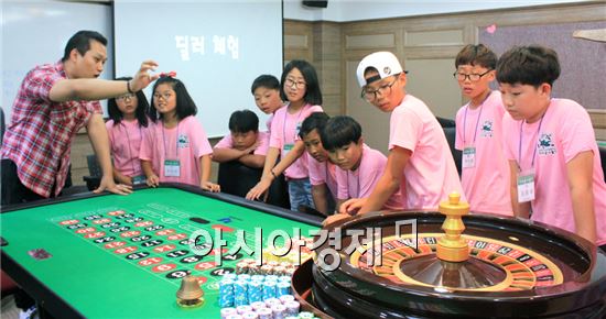"쉐프·바리스타·딜러 등 진로 탐색 및 직업 체험""IT스퀘어·레크레이션 등 IT·문화·예술 만남 기회" [아시아경제 노해섭 기자]전라남도교육청의 토요방과후 프로그램 운영사업에 3년 연속 선정된 호남대랄랄라스쿨(대표 정윤희)의 2015년도 ‘아라꿈 나들이’가 8월 7일과 8일 양일간 완도·신안 어린이를 초청해 호남대학교와 광주 일원에서 진행됐다. 4회차로 진행된 이번 캠프에서는 완도 고금초등학교(교장 박성만), 신안 지도초등학교(교장 정경수), 신안 비금동초등학교(교장 김재남), 신안 압해서초등학교(교장 윤석권) 등 4개 초등학교에서 초청된 66명의 학생들이 1박 2일 동안 호남대학교 기숙사에 머물며 다양한 진로탐색 및 직업·학과체험은 물론 IT 분야와 문화·예술 등을 체험하는 시간을 가졌다. 캠프에 참여한 학생들은 팀빌딩 및 아이스브레이킹을 통해 팀을 구성하고 진로 탐색을 위해 생각을 나누고 20년 후 자신의 모습을 상상하며 진로를 설계했다. 직업·학과 체험에서는 알리오 올리오 및 연어샐러드를 만들어보는 ‘쉐프’, 핸드드립과 커피머신을 이용해 커피를 추출해 보는 ‘바리스타’, 카지노 게임의 종류와 방법을 안내하는 ‘딜러’ 체험 등을 실시했다.전라남도교육청의 토요방과후 프로그램 운영사업에 3년 연속 선정된 호남대랄랄라스쿨(대표 정윤희)의 2015년도 ‘아라꿈 나들이’가 8월 7일과 8일 양일간 완도·신안 어린이를 초청해 호남대학교와 광주 일원에서 진행됐다. <br />