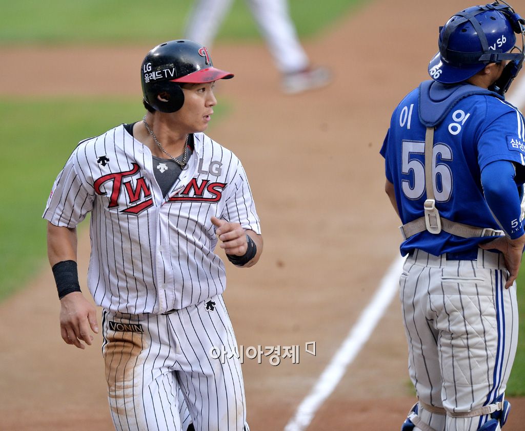 [잠실=아시아경제 김현민 기자] 2015 KBO리그 삼성 라이온즈와 LG 트윈스의 경기가 11일 잠실야구장에서 열렸다. 2회말 2사 1루에서 LG 유강남의 우익수 옆 안타 때 1루주자 오지환이 상대 실책을 틈타 홈으로 쇄도해 득점하고 있다. 김현민 기자 kimhyun81@asiae.co.kr<ⓒ세계를 보는 창 경제를 보는 눈, 아시아경제(www.asiae.co.kr) 무단전재 배포금지>