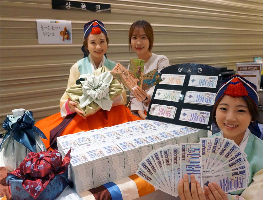 [아시아경제 최서연 기자] 현대백화점은 추석을 앞두고 17일부터 전국 14개 점포에서 추석 상품권 패키지를 판매한다. 추석 상품권 패키지는 구매고객이 원하는 대로 금액권을 골라서 구성 할 수 있다. 또한 27일부터는 고객이 200만원~3000만원 이상 상품권을 구입하면 금액대에 따라 구매금액의 0.5~3%의 상품권을 증정한다.최서연 기자 christine89@asiae.co.kr<ⓒ세계를 보는 창 경제를 보는 눈, 아시아경제(www.asiae.co.kr) 무단전재 배포금지>