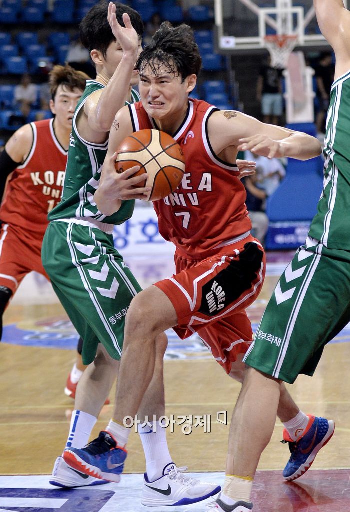 [잠실=아시아경제 김현민 기자] 2015 KCC 프로-아마 최강전 원주 동부와 고려대학교의 경기가 17일 잠실학생체육관에서 열렸다. 고려대 이동엽이 상대 수비를 뚫고 돌파하고 있다. 김현민 기자 kimhyun81@asiae.co.kr<ⓒ세계를 보는 창 경제를 보는 눈, 아시아경제(www.asiae.co.kr) 무단전재 배포금지>