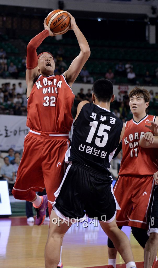 [잠실=아시아경제 김현민 기자] 2015 KCC 프로-아마 최강전 상무와 고려대학교의 경기가 19일 잠실학생체육관에서 열렸다. 고려대 이종현이 상무 최부경의 수비를 뚫고 슛하고 있다. 김현민 기자 kimhyun81@asiae.co.kr<ⓒ세계를 보는 창 경제를 보는 눈, 아시아경제(www.asiae.co.kr) 무단전재 배포금지>