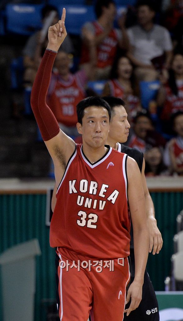 [잠실=아시아경제 김현민 기자] 2015 KCC 프로-아마 최강전 상무와 고려대학교의 경기가 19일 잠실학생체육관에서 열렸다. 고려대 이종현이 득점한 뒤 세리머니하고 있다. 김현민 기자 kimhyun81@asiae.co.kr<ⓒ세계를 보는 창 경제를 보는 눈, 아시아경제(www.asiae.co.kr) 무단전재 배포금지>