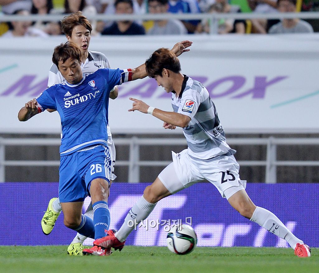[수원=아시아경제 김현민 기자] 프로축구 'K리그 클래식 2015' 수원 삼성과 성남FC의 경기가 19일 수원월드컵경기장에서 열렸다. 수원 염기훈이 상대 이태희와 공을 다투고 있다. 김현민 기자 kimhyun81@asiae.co.kr<ⓒ세계를 보는 창 경제를 보는 눈, 아시아경제(www.asiae.co.kr) 무단전재 배포금지>
