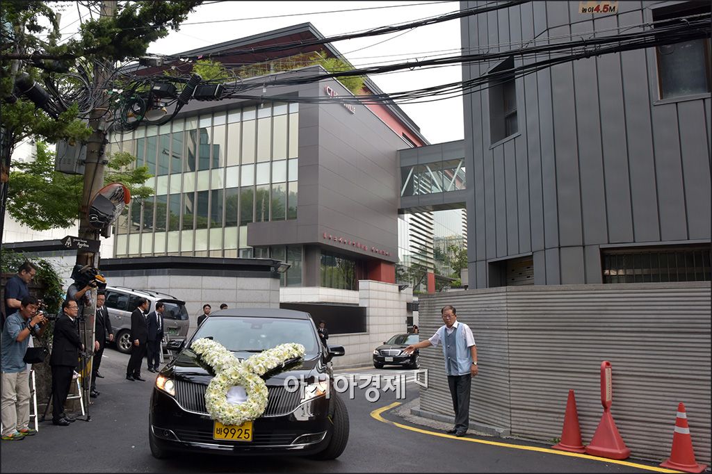 [아시아경제 윤동주 기자] 20일 故 이맹희 CJ 명예회장의 영결식이 열린 서울 중구 CJ인재원에서 운구 차량이 나가고 있다.윤동주 기자 doso7@asiae.co.kr<ⓒ세계를 보는 창 경제를 보는 눈, 아시아경제(www.asiae.co.kr) 무단전재 배포금지>
