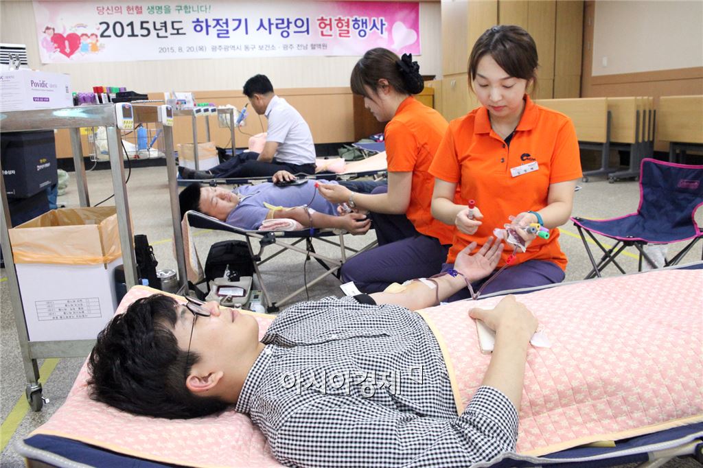 광주 동구와 대한적십자사 광주·전남혈액원이 공동으로 진행하는 생명사랑 실천 헌혈행사가 20일 동구보건소에서 동구청 직원과 공익요원, 주민들이 참여한 가운데 실시됐다. 사진제공=광주시 동구