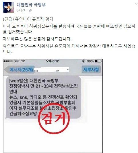 [아시아경제 온라인이슈팀] 북한의 포격 도발에 '예비군 소집' 허위 문자가 등장해 불안감을 조성했다. 허위 문자를 유포한 김모씨는 불구속 입건됐다.21일 경찰청 사이버안전국은 "20일 오후 북한의 포격 도발에 국방부를 사칭하며 예비군 징집에 관한 허위 문자메시지를 작성해 유포한 혐의로 김모(23)씨를 불구속 입건했다"고 밝혔다. 경찰에 따르면 김씨는 20일 오후 6시12분께 국방부에서 예비군 소집 문자를 받은 것처럼 허위 징집 관련 메시지를 작성해 자신의 휴대폰에 전송한 뒤 이를 캡처한 사진을 모바일메신저 등을 통해 군대 선·후임 4명에게 유포한 혐의를 받고 있다. 경찰에 따르면 김씨는 "군대 선후임에게 겁을 주고 불안감을 조성하기 위해 장난으로 보냈다. 이렇게 문자메시지가 많이 퍼질 줄 몰랐다"고 진술했다.국방부는 공식 페이스북을 통해 "어제 오후부터 허위징집문자를 발송하여 국민들을 혼란에 빠뜨렸던 김모씨를 검거했다"며 "제보해주신 많은 분들께 감사드린다. 앞으로도 국방부는 허위사실 유포자에 대해서는 강경히 대응하도록 하겠다"고 전했다.온라인이슈팀 issue@asiae.co.kr<ⓒ세계를 보는 창 경제를 보는 눈, 아시아경제(www.asiae.co.kr) 무단전재 배포금지>