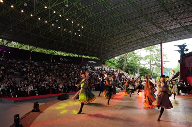 [아시아경제 오진희 기자]카스피해를 접해 러시아, 이란, 터키, 조지아 및 아르메니아와 붙어있는 '아제르바이잔'. '아제르'는 불을, '바이잔'은 나라를 의미한다. 즉 '불의 나라'다. 경주에서 열린 '실크로드 경주 2015'를 맞아 총 10개 국이 참여하는 '국가의 날' 첫 테이프를 아제르바이잔이 끊었다. 개막 이튿날인 22일 오후 경주엑스포 공원 내 백결공연장에서 ‘아제르바이잔의 날’ 행사가 열렸다. 아제르바이잔 ‘영광’ 훈장을 받은 아파그 말리코바가 예술감독을 맡아 진행된 공연에서 국가 무용 앙상블과 국가 고대 악기 앙상블 등 국가를 대표하는 가수, 연주자, 무용단 등 총 출연해 19개의 악기공연, 민속무용, 민속노래 등을 펼쳤다. 공연단은 오는 25일까지 백결공연장에서 공연을 진행한다. 이 중 ‘위제이르 하지베오프’ 오페라 중 ‘듀엣’ 공연에선 아제르바이잔 최초의 오페라로 공훈 예술가 ‘아나르 슈살르’의 아름다운 음성이 울려 퍼졌다. 이 노래는 연인들이 첫 만남에서 사랑을 느끼는 감정을 표현했다. 여기에 남녀 출연자의 아름다운 몸동작도 더해졌다. 아제르바이잔 국가 무용 앙상블은 1970년에 조직됐으며, 미국, 중국, 프랑스, 이탈리아, 독일 등 전 세계를 돌며 공연 중이다. 국가 고대 악기 앙상블은 음악가 13명으로 이뤄져 있으며 아제르바이잔 공훈예술가 무니스 셰리포브가 총감독을 맡았다.경주 시가지 퍼레이드