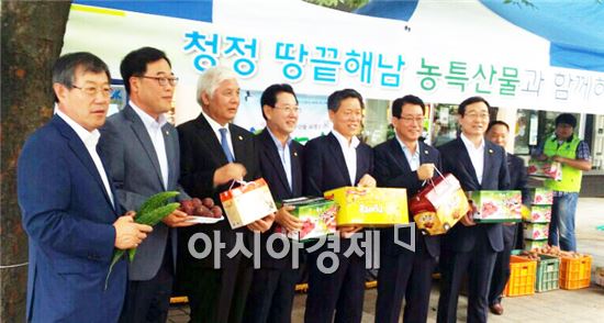 "국회 예결위 기간 중 청정 땅끝해남 특산품전 개최 "[아시아경제 노해섭 기자]해남군(군수 박철환)의 청정 농특산품이 국민 대표 국회를 찾았다. 군은 지난 8월 18일부터 20일까지 3일간 국회 후생관 앞 특설매장에서 관내 생산농가와 단체 등이 참여한 가운데 ‘청정 땅끝해남 특산품전’을 개최했다. 경기침체와 메르스 사태 등으로 어려움을 겪고 있는 지역 농어민의 사기를 진작하고 도농교류 활성화를 위해 마련된 이번 행사는 국회 예결위 기간 중 열려 국가대표 특산품과 국민대표 국회의 만남으로 더욱 관심을 모았다. 특히 정의화 국회의장을 비롯한 국회의원들과 사무처 직원, 인근 주민들이 참여한 가운데 고구마, 밤호박, 무화과 등 제철 농산품에 대한 현장 즉석 시식회 등이 실시돼 해남 특산품에 대한 높은 인기를 재확인하기도 했다. 행사에서는 옥천농협, 무화과주식회사 등 관내 7개 업체에서 50여개 품목의 해남 특산품을 판매하고, 홍보 마케팅을 펼쳐 향후 청정해남 농특산품 판로개척에 새로운 가능성을 제시했다.노해섭 기자 nogary@<ⓒ세계를 보는 창 경제를 보는 눈, 아시아경제(www.asiae.co.kr) 무단전재 배포금지>