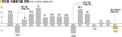 올들어 8개월째 부진…2001~2002년엔 13개월·2008~2009년엔 12개월 연속감소