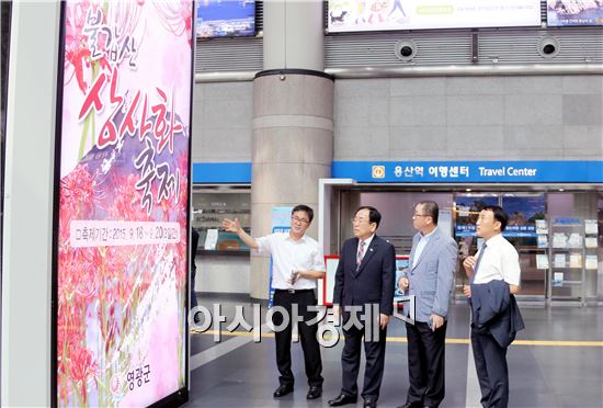 영광군(군수 김준성)은 21일 KTX 용산역을 방문해 역사내 추진 중에 있는 군정 홍보 추진상황 점검을 실시했다.<br />