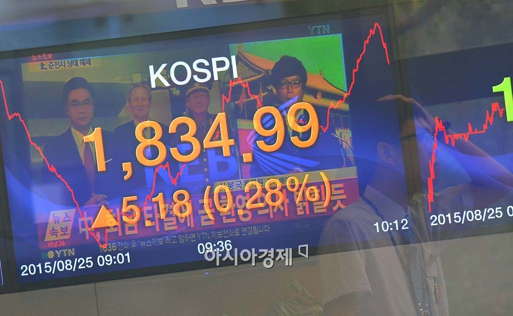 [아시아경제 백소아 기자] 25일 서울 중구 외화은행 본점 딜링룸 전광판에 코스피 지수가 상승세를 이어가고 있다. 이날 코스피 지수는 1840선을 회복하며 상승 출발했지만 강보합세로 들어서면서 반등 기회를 엿보고 있다. (다중노출 촬영)백소아 기자 sharp2046@asiae.co.kr<ⓒ세계를 보는 창 경제를 보는 눈, 아시아경제(www.asiae.co.kr) 무단전재 배포금지>