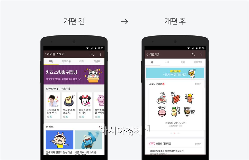 [아시아경제 한진주 기자] 카카오톡 이모티콘 스토어가 새롭게 바뀐다. 이모티콘을 다양한 카테고리별로 분류하고, 이용자의 취향을 분석해 이모티콘을 추천해주는 코너가 신설됐다.25일 다음카카오는 2013년 10월 이후 약 2년만에 카카오톡 이모티콘 스토어를 대대적으로 개편했다고 밝혔다. 개편된 이모티콘 스토어는 캐릭터 별 카테고리로 이모티콘을 분류한다. 2000여종에 달하는 이모티콘을 ▲카카오프렌즈 ▲웹툰 ▲소녀감성’ 등 세부 카테고리로 나눴다. 또 '신규'와 '인기' 이모티콘 목록을 상위 메뉴로 올려 손쉽게 살펴볼 수 있다. 다음카카오는 개편을 통해 이용자들마다 이모티콘 취향이 다르다는 점에 착안해 개인화된 추천 서비스를 강화했다. 이용자와 친구들의 이모티콘 구매, 사용, 클릭 패턴을 분석해 이용자가 좋아할 만한 이모티콘을 추천해주는 'ㅇㅇㅇ님에게 추천해요' 코너가 생겼다. 애니메이션·커플·솔로·사투리 등 상황이나 주제별 이모티콘을 추천해주는 '이런 이모티콘 어때요' 코너도 만들었다.유행에 민감한 이용자를 위해 '실시간 급상승' 영역도 신설됐다. 현재 가장 주목받고 있는 이모티콘을 실시간으로 확인해볼 수 있다.한편 이번 이모티콘 스토어 업데이트는 안드로이드 카카오톡에 먼저 적용된다. 아이폰은 추후 적용될 예정이다. 다음카카오 측은 "이모티콘 스토어를 개편함으로써 판매 확대, 새로운 콘텐츠의 생산으로 이어져 건강한 생태계의 형성에 이바지할 수 있을 것으로 기대한다"며 "이모티콘 스토어가 상생 플랫폼으로 기획된만큼 작가의 목소리를 더 많이 담고, 같이 성장할 수 있는 플랫폼으로 확대해 나갈 것"이라고 말했다.한진주 기자 truepearl@asiae.co.kr<ⓒ세계를 보는 창 경제를 보는 눈, 아시아경제(www.asiae.co.kr) 무단전재 배포금지>