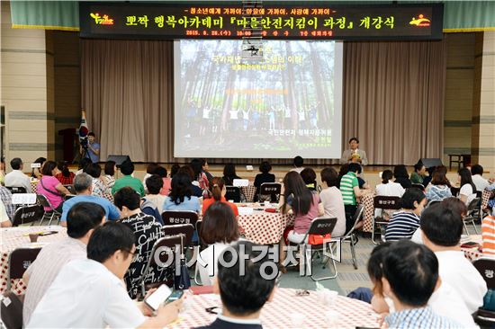 "광산구, 평생학습‘마을안전지킴이’과정 개강…안전마을 만들기 등 교육"[아시아경제 노해섭 기자]광주시 광산구(구청장 민형배)가 26일 구청에서 마을 안전을 주민들이 스스로 지키는 ‘마을안전지킴이’과정을 개강했다. 이번 과정은 교육부 주관 평생학습특성화 공모사업 선정에 따라 광산구가 8월부터 진행하고 있는 ‘뽀짝 행복아카데미’프로그램 가운데 하나다. 마을 안전을 내용으로 한 평생교육과정 개설은 전국 지자체 중 광산구가 최초다. 10월 28일까지 총 13회에 걸쳐 주민들은 ‘내가 살고 있는 마을은 안전한가’를 주제로 화재 등 위기 상황 대처능력을 기르고, 안전한 마을 만들기 방법을 고민한다. 특히 광산소방서의 도움으로 골절 응급처치와 심폐소생술 등을 배우고, 마을 안전을 위협하는 곳을 가족 단위로 돌며 함께 문제를 공유하고 해결책도 마련해 실천한다. 광산구는 과정 수료 주민들을 중심으로 마을안전지킴이 동아리를 만들도록 돕고, 교육이 취업으로 이어질 수 있도록 소방안전관리자 자격증 취득도 지원할 예정이다. 이날 개강식에 참가한 150여명의 주민들은 1시간 동안 문현철 국방부 정책자문위원으로부터 ‘생활안전이란 무엇인가’ 특강도 들었다. 노해섭 기자 nogary@<ⓒ세계를 보는 창 경제를 보는 눈, 아시아경제(www.asiae.co.kr) 무단전재 배포금지>
