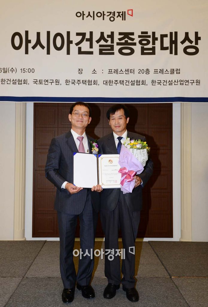 [아시아경제 백소아 기자] 26일 서울 태평로 프레스센터에서 아시아경제 신문 주최로 열린 제 10회 아시아건설종합대상 시상식에서 주거서비스부문 대상을 수상한 한라를 대표해 신현복 이사(오른쪽)와 시상자 이세정 아시아경제신문 대표가 기념사진촬영을 하고 있다.백소아 기자 sharp2046@asiae.co.kr<ⓒ세계를 보는 창 경제를 보는 눈, 아시아경제(www.asiae.co.kr) 무단전재 배포금지>