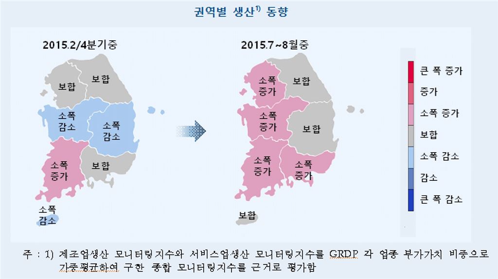 [아시아경제 이은정 기자] 한국은행은 올 7~8월 중 국내 경기가 중동호흡기증후군(MERS·메르스)의 충격에서 벗어나 회복세를 보이고 있다고 진단했다. 한은은 27일 발표한 '지역경제보고서'에서 "지역 모니터링 결과 수도권, 동남권(부산, 울산, 경남), 충청권의 생산이 보합 내지 소폭 감소에서 소폭 증가로 개선됐고 2분기중 생산이 소폭 감소했던 대경권(대구, 경북), 제주권은 7∼8월 들어 보합수준을 보였다"며 이같이 평가했다. 지역경제보고서는 한은 16개 지역본부가 지난달 말부터 이달 중순까지 지역 기업들을 심층 면담하고 설문조사를 벌여 전국의 경기 흐름을 파악ㆍ분석하는 보고서다.생산 측면에서 살펴보면 제조업생산은 보합 수준을 보였지만 서비스업생산은 소폭 증가한 것으로 조사됐다. 제조업생산의 경우 수도권에서는 반도체를 중심으로 소폭 증가했으나 충청권, 호남권, 대경권에서 2분기 수준에 머물고 동남권은 조선, 석유정제를 중심으로 소폭 감소하면서 전체적으로는 전분기 수준을 보였다. 서비스업생산은 외국인 관광객 감소로 제주권이 소폭 감소했지만 수도권, 동남권, 충청권, 호남권 등의 권역에서 도소매업, 관광·여가서비스업 등을 중심으로 소폭 올랐다. 수요측면에서 보면 소비는 메르스 이후 위축됐던 소비심리가 다소 개선되면서 제주권을 제외한 모든 지역에서 회복세를 보였다. 설비투자는 수도권과 충청권에서 IT관련 투자를 중심으로 동남권에서는 자동차, 석유정제업의 투자가 늘어나면서 소폭 증가한 것으로 나타났다. 건설투자도 호남권을 제외한 대부분의 권역에서 주거용 건물건설 및 토목건설을 중심으로 양호한 흐름을 보였다. 수출은 부진했다. 수도권, 동남권은 보합수준을 보였지만 충청권, 호남권의 자동차 및 석유?화학제품의 수출 실적이 줄었기 때문이다. 한은은 IT제품에 대한 수요 증가, 자동차 신차 출시 등에 따라 그간의 부진이 다소 완화될 것으로 예상했다.또 지난달 중 취업자 수는 전년동기대비 33만명 늘어 2분기(월평균 31만명)에 비해 증가폭이 소폭 확대된 것으로 나타났다. 지난달 중 소비자물가는 주택매매 및 전세 가격은 상승세에 따라 낮은 오름세를 지속했다. 수도권이 1%의 소비자물가상승률을 기록했고 동남권, 충청권, 대경권, 제주권 등은 0%대의 낮은 상승률을 보였다. 한은은 "향후 국내 경기는 개선 흐름을 나타낼 것으로 보이나 중국경제 성장둔화, 주력 생산품의 경쟁력 약화 등으로 그 속도는 완만할 것"으로 전망했다. 이은정 기자 mybang21@asiae.co.kr<ⓒ세계를 보는 창 경제를 보는 눈, 아시아경제(www.asiae.co.kr) 무단전재 배포금지>