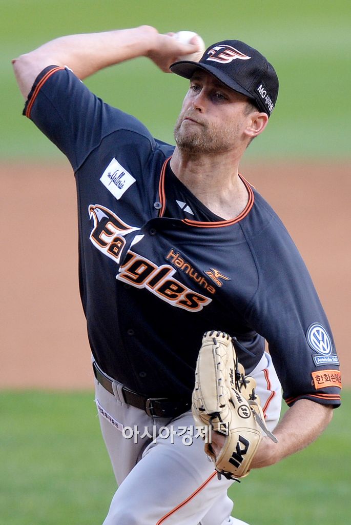 [잠실=아시아경제 김현민 기자] 2015 KBO리그 한화 이글스와 두산 베어스의 경기가 30일 잠실야구장에서 열렸다. 한화 선발투수 탈보트가 역투하고 있다. 김현민 기자 kimhyun81@asiae.co.kr<ⓒ세계를 보는 창 경제를 보는 눈, 아시아경제(www.asiae.co.kr) 무단전재 배포금지>