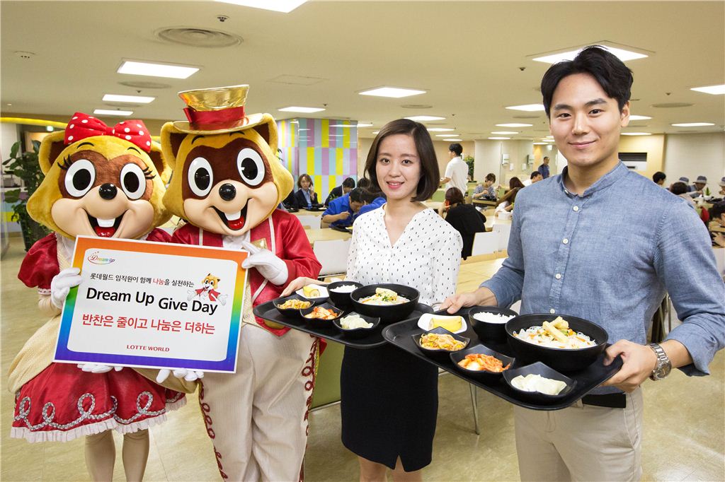 [아시아경제 조용준기자]롯데월드(대표 박동기)는 지난 28일 임직원 참여 사회공헌활동의 일환으로 첫 번째 '드림업 기부데이(Dream Up Give Day)'를 진행했다. '드림업 기부데이(Dream Up Give Day)'는 한 달에 한 번 임직원들이 반찬을 조금 줄인 '기부메뉴'로 식사하면, 식수만큼 '드림업(Dream Up)' 기금이 마련돼 소외계층 아동을 지원하는 프로그램이다. 간소화된 식단으로 제공되는 기부메뉴로 식사를 하면 한 끼에 약 1,500원의 금액이 적립되고, 1,500원의 회사 출연금이 더해져 임직원 1인당 3,000원을 기부할 수 있게 된다. 1,600여 명의 롯데월드 임직원이 참여해 식사를 하면 월 약 500만원, 연간 약 6천만원의 '드림업 기금'이 조성되어 소외계층 아동을 위한 사업에 활용된다.롯데월드 박동기 대표이사는 "대한민국 테마파크 선두주자로서 앞으로도 소외되고 어려운 이웃과 지속적으로 사랑을 함께 나누며, 지역사회에 사회적 책임을 다해 '나눔'의 문화를 만들어 가는데 적극 앞장설 것"이라고 강조했다.한편, 롯데월드는 지난 7월 10일 '샤롯데 봉사단' 발대식을 계기로 대표 캠페인 '드림업(Dream Up)'을 소개하고 사회공헌활동의 브랜드화에도 적극 나섰다드림업 기부데이