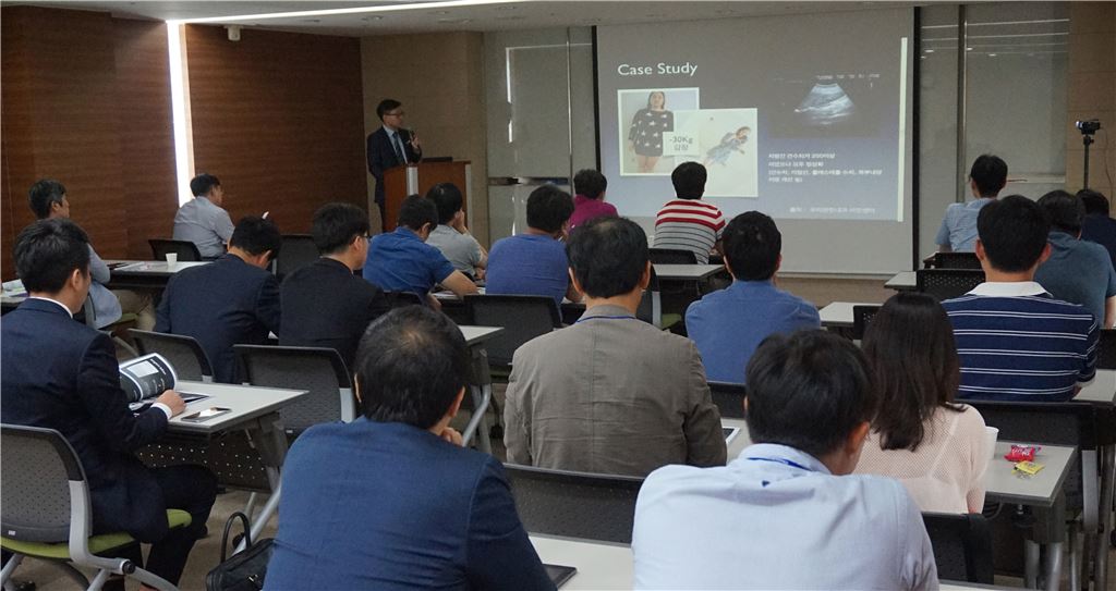종근당이 30일 서울 역삼동 종근당 강남사옥에서 개최한 비만치료 위풍선 '엔드볼' 임상세미나에서 여의도 우리편한내과 이광균 원장이 임상 사례를 소개하고 있다.
