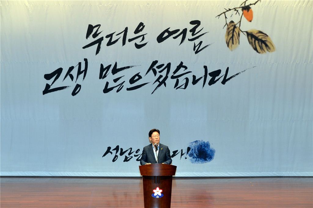 이재명 성남시장이 1일 9월 월례조회를 하고 있다.