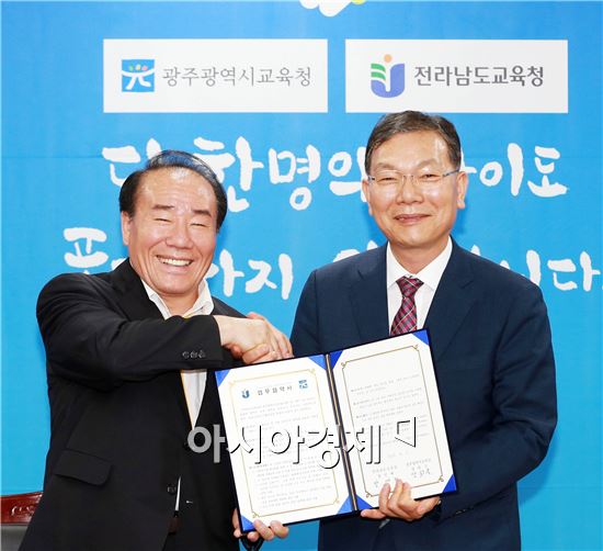 장만채 전라남도교육감은 “지역 인재를 기르기 위한 두 교육청의 상생·협력을 위한 노력에 큰 의미가 있다”며 “광주와 전남의 교육은 원래 한 뿌리라는 역사적 사실을 새기면서 우리 아이들이 호남의 인재로 당당하게 성장할 수 있도록 힘을 모아야 한다”고 강조했다. 장휘국 광주시교육감도 “양 교육청은 상생과 협력의 교육철학을 기반으로 호남의 인재양성이라는 공동 목표를 실행해 왔다”며 “이번 업무협약을 통해 광주와 전남교육청이 함께 손을 맞잡고 광주와 전남교육에 희망의 바람을 불러일으키겠다”고 말했다.노해섭 기자 nogary@<ⓒ세계를 보는 창 경제를 보는 눈, 아시아경제(www.asiae.co.kr) 무단전재 배포금지>