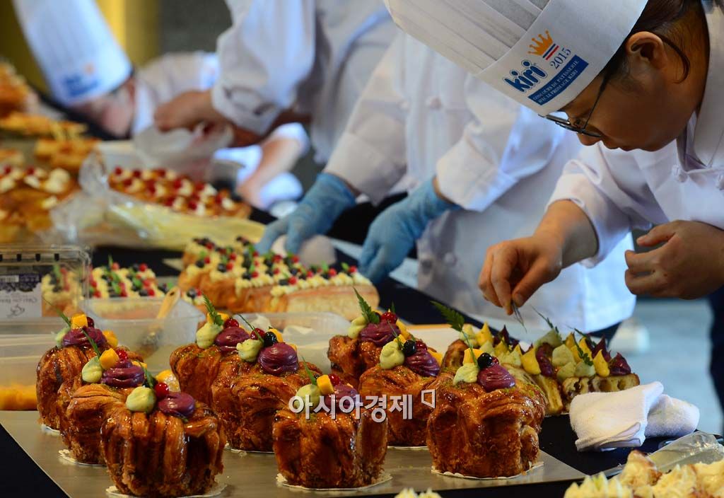 [아시아경제 백소아 기자] 1일 서울 태평로 플라자호텔에서 열린 제3회 끼리크림치즈 경연대회에 참가한 제과제빵사(파티쉐)들이 끼리크림치즈를 이용한 다양한 작품을 만들며 열띤 경쟁을 하고 있다.백소아 기자 sharp2046@asiae.co.kr<ⓒ세계를 보는 창 경제를 보는 눈, 아시아경제(www.asiae.co.kr) 무단전재 배포금지>
