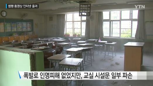 [아시아경제 온라인이슈팀] 서울 양천구의 한 중학교 교실에서 1일 폭발 사고가 발생했다.범인은 인터넷에 폭발을 일으키는 장면으로 추정되는 동영상을 올려 경찰이 이를 단서로 수사를 벌이고 있다.시교육청에 따르면 1일 오후 2시쯤 서울 양천구의 한 중학교 교실에서 버너 등에 사용하는 소형 부탄가스가 폭발하는 사고가 났다. 다행히 사고 당시 교실에 학생들이 없어 인명 피해는 발생하지 않았다. 경찰관계자는 "3년 전 전학을 간 학생이 빈 교실에 침입해 부탄가스통을 놓아둔 것으로 보고 행방을 좇고 있다"고 말했다.범인은 사건 후 인터넷에 'XX중 테러'라는 제목의 동영상을 올렸다. 동영상에는 학생으로 보이는 범인이 교실에서 불을 댕기는 장면과 폭발 직후 학교 밖으로 나오는 장면이 들어있다.범인은 이 동영상에서 "엄청나게 큰 폭발음과 함께 학생들이 창문 밖을 내다보고 있다"며 "이럴 줄 알았으면 부탄가스를 하나 더 가지고 오는 건데"라고 말하기도 했다.경찰은 사고 현장 주변을 통제하고 정확한 피해 상황을 조사하는 중이다. 학교에서 발생한 범죄에 서울시교육청 관계자는 "사실관계 발생은 확인했다"며 "범인의 신상조사 등을 파악한 후 향후 조치를 취할 것"이라고 밝혔다.<center><div class="slide_frame"><input type="hidden" id="slideIframeId" value="2015090211003389684A">