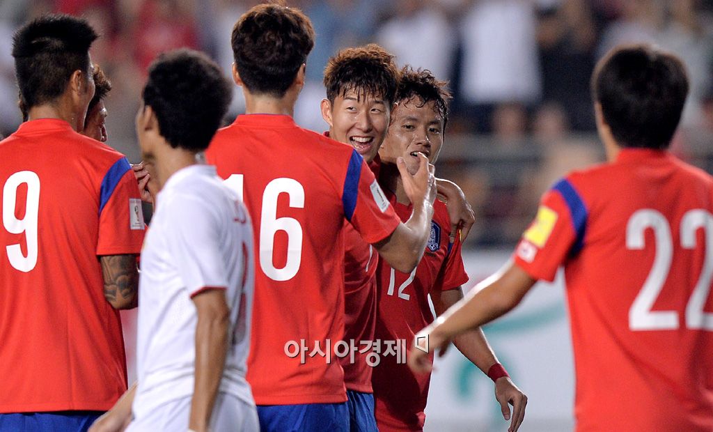 [화성=아시아경제 김현민 기자] 울리 슈틸리케 감독이 이끄는 축구 국가대표팀이 3일 화성종합경기타운에서 라오스와의 2018 러시아 월드컵 아시아지역 2차 예선 경기를 했다. 손흥민이 두 번째 골을 성공시킨 뒤 어시스트한 홍철과 기뻐하고 있다.김현민 기자 kimhyun81@asiae.co.kr<ⓒ세계를 보는 창 경제를 보는 눈, 아시아경제(www.asiae.co.kr) 무단전재 배포금지>