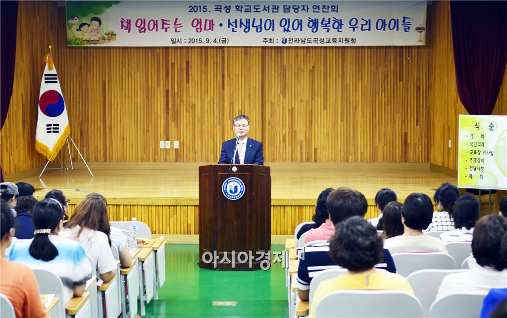 곡성교육청(교육장 박찬주)은 4일 오후 곡성교육문화회관에서 관내 학교도서관담당자와 학부모자원봉사자 및 독서교육에 관심 있는 교직원과 학부모를 대상으로 2015. 곡성 학교도서관 담당자 연찬회를 실시했다.<br />