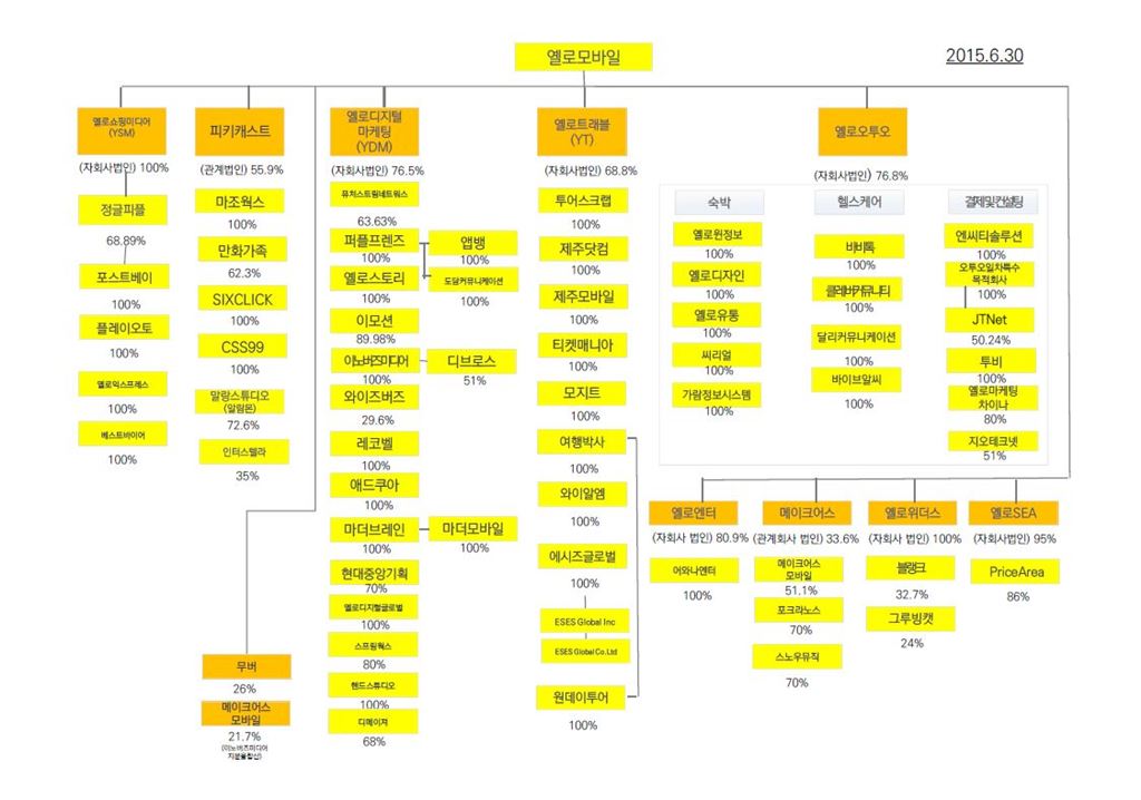옐로모바일 조직도 (2015년 6월 말 기준)
