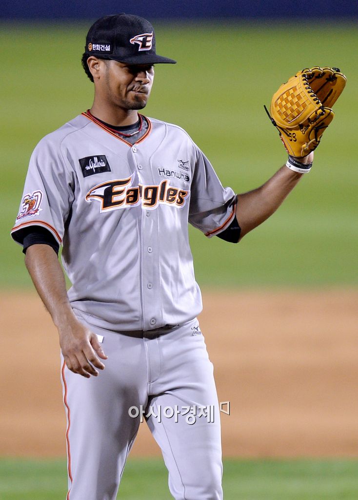 [잠실=아시아경제 김현민 기자] 2015 KBO리그 한화 이글스와 LG 트윈스의 경기가 8일 잠실야구장에서 열렸다. 한화 선발 로저스가 3회말 1사에서 LG 박용택에게 우월 솔로 홈런을 허용하며 아쉬워하고 있다. 김현민 기자 kimhyun81@asiae.co.kr<ⓒ세계를 보는 창 경제를 보는 눈, 아시아경제(www.asiae.co.kr) 무단전재 배포금지>