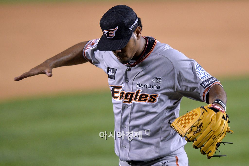 [잠실=아시아경제 김현민 기자] 2015 KBO리그 한화 이글스와 LG 트윈스의 경기가 8일 잠실야구장에서 열렸다. 한화 선발 로저스가 7회말 2사에서 LG 양석환을 중견수 뜬공으로 처리한 뒤 세리머니하고 있다. 김현민 기자 kimhyun81@asiae.co.kr<ⓒ세계를 보는 창 경제를 보는 눈, 아시아경제(www.asiae.co.kr) 무단전재 배포금지>