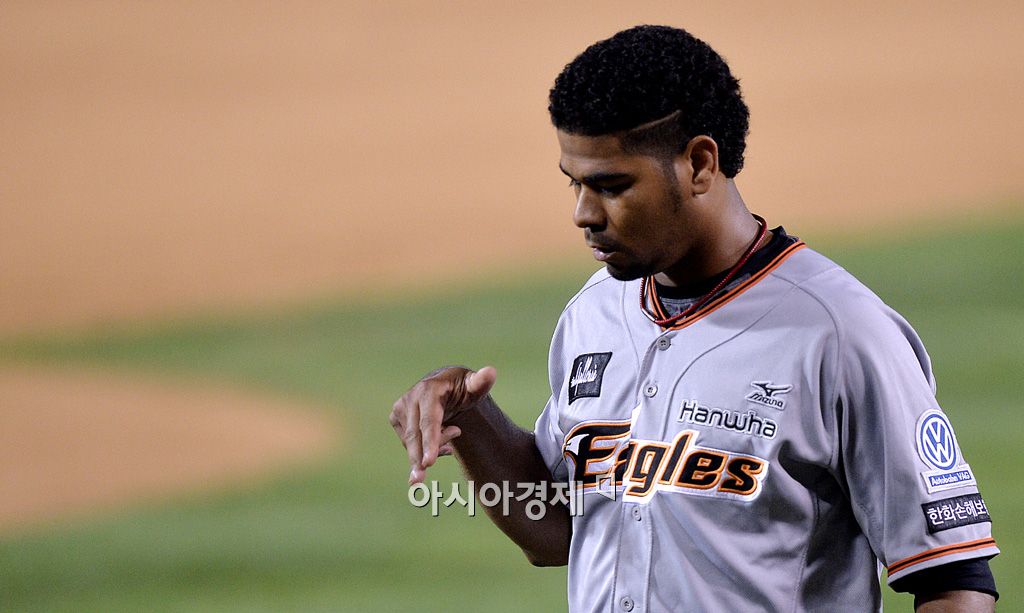 [잠실=아시아경제 김현민 기자] 2015 KBO리그 한화 이글스와 LG 트윈스의 경기가 8일 잠실야구장에서 열렸다. 한화 선발 로저스가 6회말 1사 1루에서 LG 유강남을 유격수 병살타로 처리한 뒤 세리머니하고 있다. 김현민 기자 kimhyun81@asiae.co.kr<ⓒ세계를 보는 창 경제를 보는 눈, 아시아경제(www.asiae.co.kr) 무단전재 배포금지>