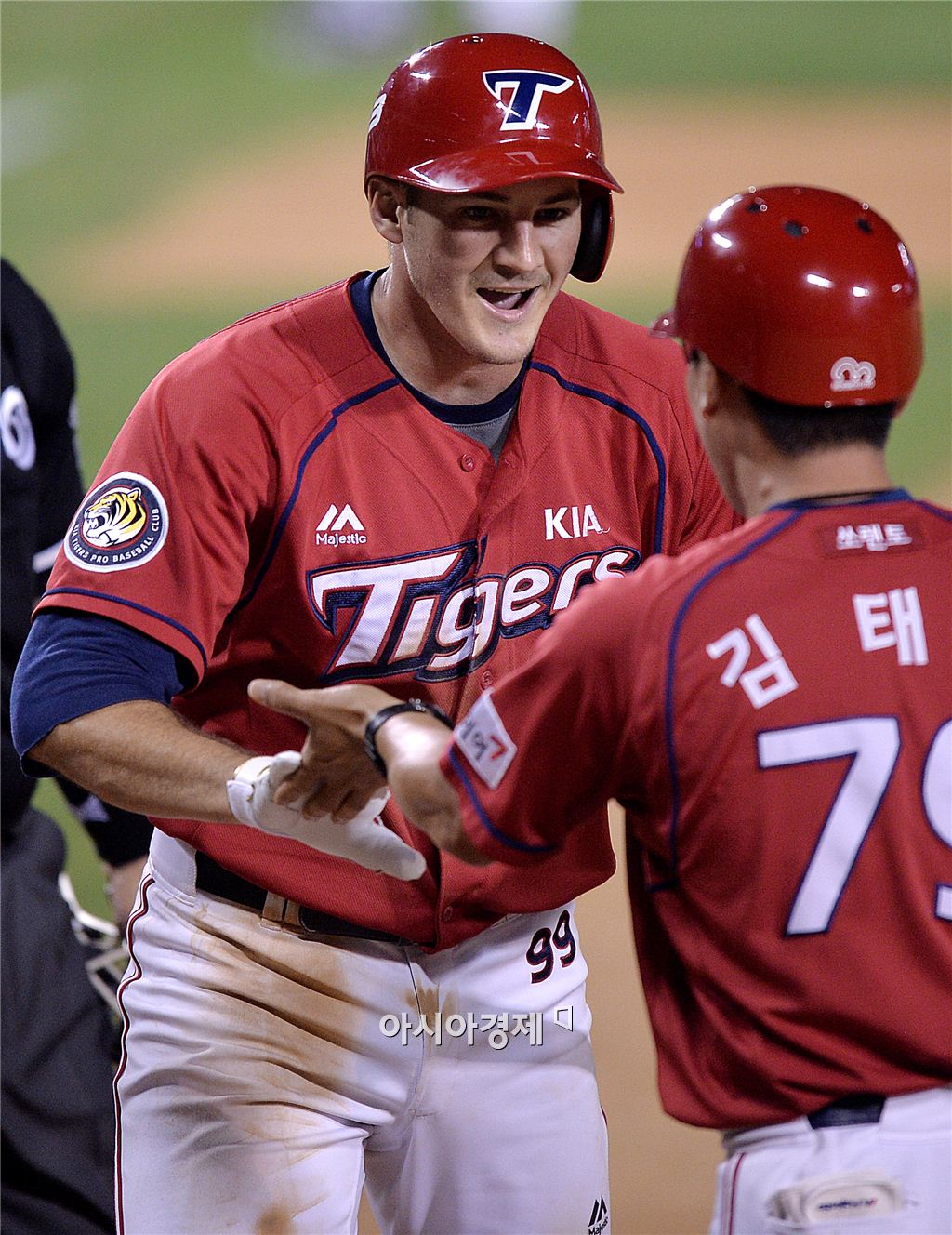 [잠실=아시아경제 김현민 기자] 2015 KBO리그 KIA 타이거즈와 두산 베어스의 경기가 10일 잠실야구장에서 열렸다. 7회초 1사 1,3루에서 KIA 브렛 필이 두산 이현승을 상대로 역전 3점 홈런을 치고 김태룡 코치와 기뻐하고 있다. 김현민 기자 kimhyun81@asiae.co.kr<ⓒ세계를 보는 창 경제를 보는 눈, 아시아경제(www.asiae.co.kr) 무단전재 배포금지>