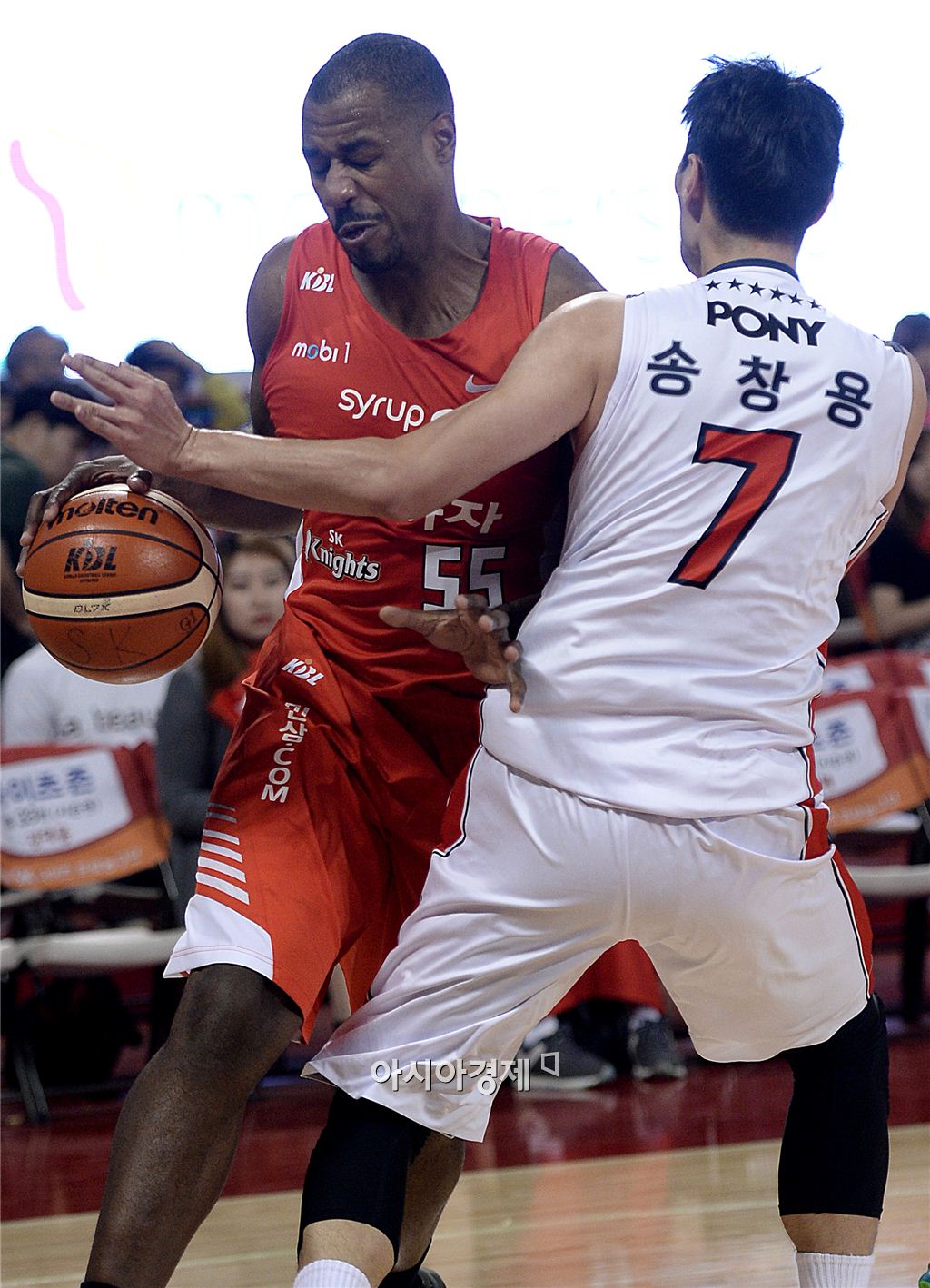 [잠실=아시아경제 김현민 기자] 프로농구 서울 SK와 울산 모비스의 경기가 13일 잠실학생체육관에서 열렸다. SK 사이먼이 상대 송창용의 수비를 뚫고 돌파를 시도하다 공격자 파울을 범하고 있다. 김현민 기자 kimhyun81@asiae.co.kr<ⓒ세계를 보는 창 경제를 보는 눈, 아시아경제(www.asiae.co.kr) 무단전재 배포금지>