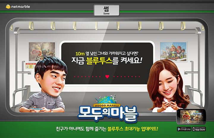 10m 이내에서 블루투스 활용해 모두의마블 함께 즐긴다 [아시아경제 안하늘 기자] 넷마블게임즈는 14일 캐주얼 모바일게임 '모두의마블'에 블루투스(근거리무선통신) 기능 추가했다고 밝혔다. 이번 업데이트를 통해 추가된 모두의마블의 블루투스 기능은 지하철, 카페 등 10m 내 같은 공간에서 모두의마블을 플레이하고 있는 이용자가 있다면 초대 기능을 통해 함께 게임을 즐길 수 있도록 해준다.넷마블은 이를 홍보하기 위한 미니드라마도 공개했다. 모두의마블 미니드라마는 카페에서 일하는 남성이 이상형인 단골 여자 손님의 관심을 얻기 위해 모두의마블을 활용한다는 에피소드를 담아냈다. 특히, 100초 분량의 에피소드 속 남자 주인공은 여자 손님의 환심을 사기 위해 상상속에서 다양한 시나리오를 그려보던 중 여자 손님이 모두의마블을 플레이 하는 것을 확인하고 게임 내 새롭게 등장한 블루투스 기능을 활용하는 콘셉트를 띄고 있다. 이정호 넷마블 본부장은 "이번 블루투스 기능은 지인 및 게임 친구 뿐아니라 같은 공간 내 일면식 없는 사람들과도 게임을 즐기고 관계를 형성해 나가는 색다른 즐거움을 선사할 것"이라며 "모두의마블 미니드라마를 페이스북, 유튜브 등 소셜네트워크서비스(SNS) 채널을 통해 적극적으로 알려나가 보다 많은 이용자들이 이 기능을 함께 즐길 수 있도록 하겠다"고 말했다. 한편, 모두의마블은 남녀노소 누구나 쉽게 즐길 수 있는 게임성으로 지난 2013년 6월11일 국내 출시 후 지금까지 꾸준한 인기를 누리고 있다. 또 지난해 7월부터 중국, 일본, 대만, 태국, 인도네시아 등 총 5개국에 진출해 누적 다운로드 1억 2000만건, 누적매출 4000억을 돌파한 바 있다. 이번에 공개한 모두의마블 미니드라마는 넷마블 공식 유튜브채널 (https://youtu.be/RNnKWdCru0g)이나 모두의마블 공식 페이스북 (https://www.facebook.com/netmarblemoma)을 통해 볼 수 있다. 게임에 대한 보다 자세한 정보는 넷마블 모바일 공식 홈페이지(//mobile.netmarble.net)및 공식카페(//cafe.naver.com/momakakao)로 확인 가능하다. 안하늘 기자 ahn708@asiae.co.kr<ⓒ세계를 보는 창 경제를 보는 눈, 아시아경제(www.asiae.co.kr) 무단전재 배포금지>