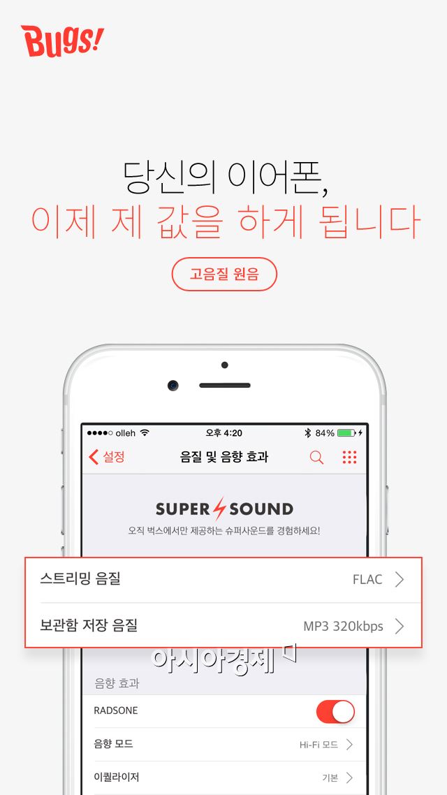 [아시아경제 한진주 기자] 벅스가 iOS 앱에서 CD 수준의 고음질을 자랑하는 FLAC 원음 스트리밍 서비스를 시작한다고 18일 밝혔다.벅스는 2009년 국내 최초로 FLAC 원음 다운로드 서비스를 시작했고 지난 2월 안드로이드 앱에 이어 iOS 앱에서도 FLAC 원음 스트리밍 서비스가 추가된 업데이트를 완료했다.벅스의 FLAC 음원은 90만곡에 달하며 'FLAC 전용관'에서 모아 들을 수 있다. 여기에 국내에서 유일하게 적용된 음질향상솔루션 '래드손(RADSONE)'을 활용하면 한차원 높은 음질로 음악을 감상할 수 있다.벅스는 이번 업데이트를 통해 이용자의 요청이 많았던 '가사 검색'도 추가했다. 곡이나 아티스트명은 물론 한 단어의 가사만 입력해도 원하는 노래를 찾을 수 있다.이 밖에 '복면가왕' 독점 영상, 동영상 서비스 '벅스TV' 등 벅스만의 특별한 콘텐츠를 SNS에 공유하는 기능도 제공한다.한편 벅스는 지난 6월부터 애플워치에서도 벅스 앱을 지원하고 있다. 이번 업데이트에서는 원하는 테마를 선택하면 자동으로 음악이 선곡되는 '오늘의 추천 테마' 메뉴를 추가했다.한진주 기자 truepearl@asiae.co.kr<ⓒ세계를 보는 창 경제를 보는 눈, 아시아경제(www.asiae.co.kr) 무단전재 배포금지>