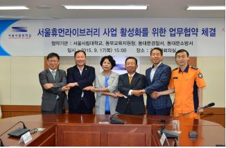 이날 협약식에는 김인호 서울시의회 부의장을 포함해 원윤희 서울시립대 총장, 이영희 동부교육지원청 교육장, 이재승 동대문경찰서장, 현진수 동대문소방서장 등이 참석했다.이번 업무협약을 제안한 김인호 부의장은 ‘휴먼라이브러리’는 도서관에 와서 책을 빌리는 것이 아니라 사람(휴먼북)을 빌려 생생한 경험과 지식을 공유하고 소통하는 신개념의 도서관으로 덴마크의 로니아버겔(Ronni Abergel)이 시작, 세계적으로 확산되고 있는 사업이라고 소개했다.또 김 부의장은 “휴먼라이브러리 사업은 기존 종이나 디지털 정보 대신 사람의 지식, 정보, 경험 등을 책처럼 대여하는 형식이기 때문에 지역유관기관과 사람들의 적극적인 참여가 전제돼야 한다”면서 “그런 의미에서 지역유관기관이 참여하는 이번 협무협약은 사업활성화는 물론 지역주민의 공동체 문화확대와 화합에도 많은 도움이 될 것”이라고 기대감을 나타냈다.협약식