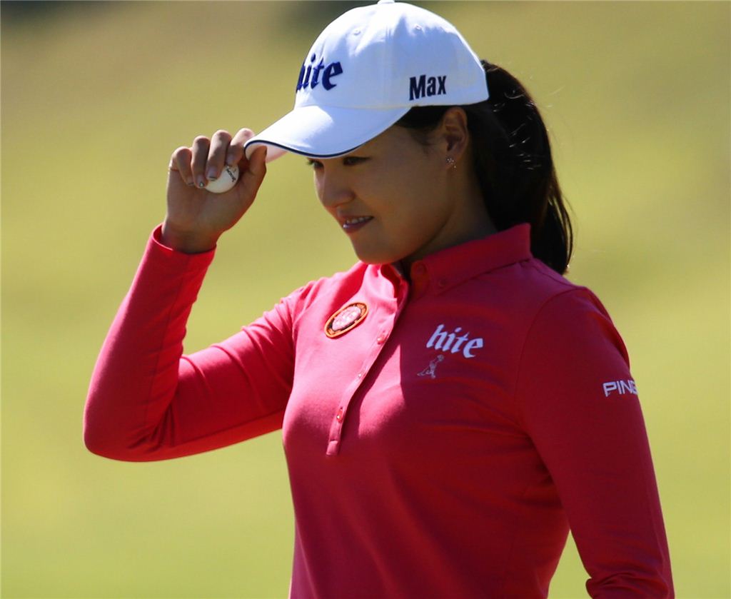 전인지가 대우증권클래식 둘째날 14번홀에서 버디를 잡아낸 뒤 갤러리의 환호에 인사하고 있다. 사진=KLPGA 제공