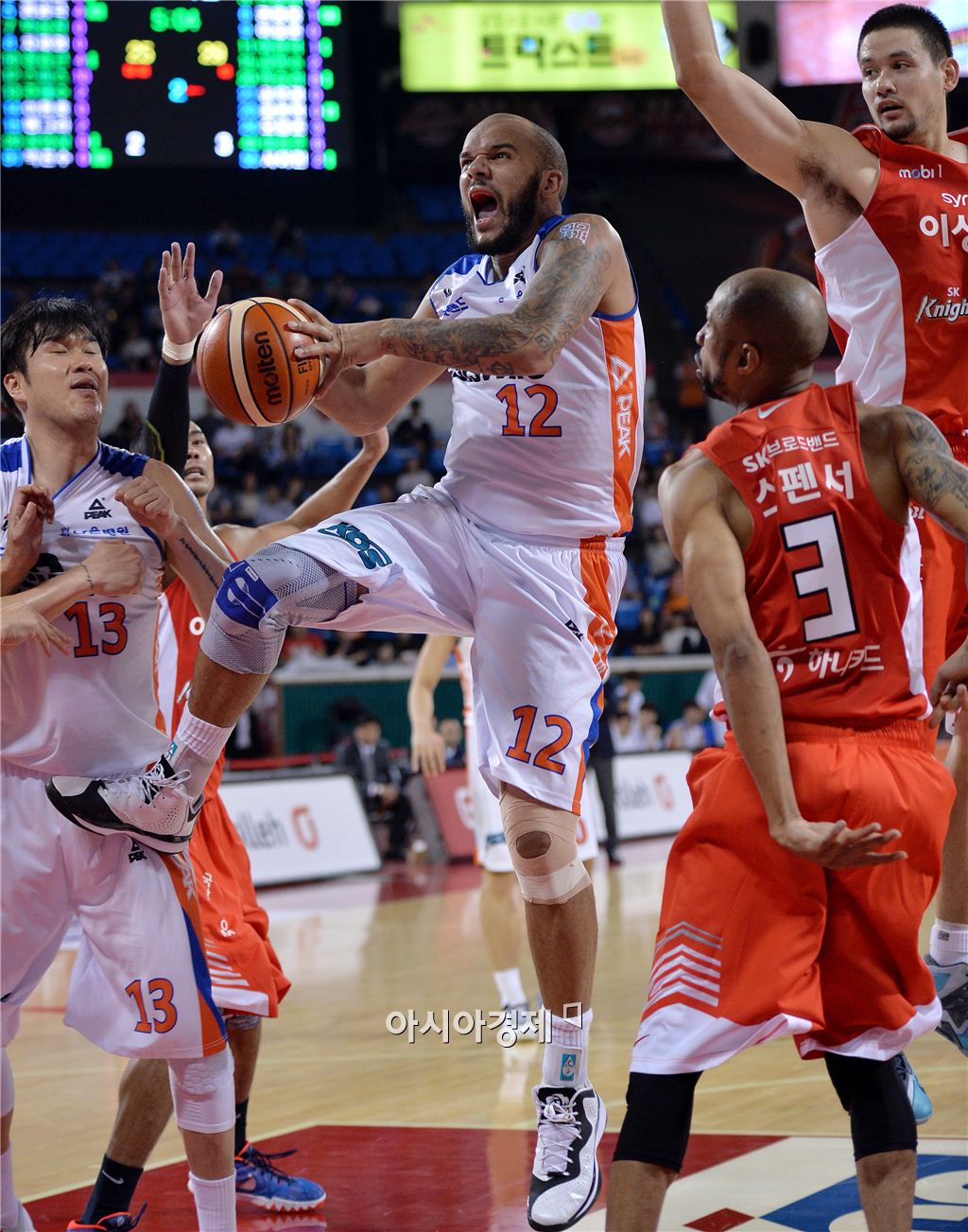 [잠실=아시아경제 김현민 기자] 프로농구 서울 SK와 인천 전자랜드의 경기가 25일 잠실학생체육관에서 열렸다. 전자랜드 스미스가 상대 스펜서의 수비를 뚫고 공격하고 있다. 김현민 기자 kimhyun81@asiae.co.kr<ⓒ세계를 보는 창 경제를 보는 눈, 아시아경제(www.asiae.co.kr) 무단전재 배포금지>