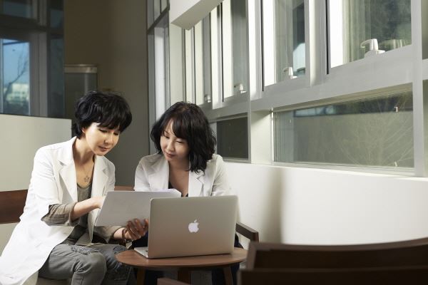 박경림 필러디자이너(왼쪽)과 의논중인 쁘띠퀸의원 곽은영 원장(오른쪽)
