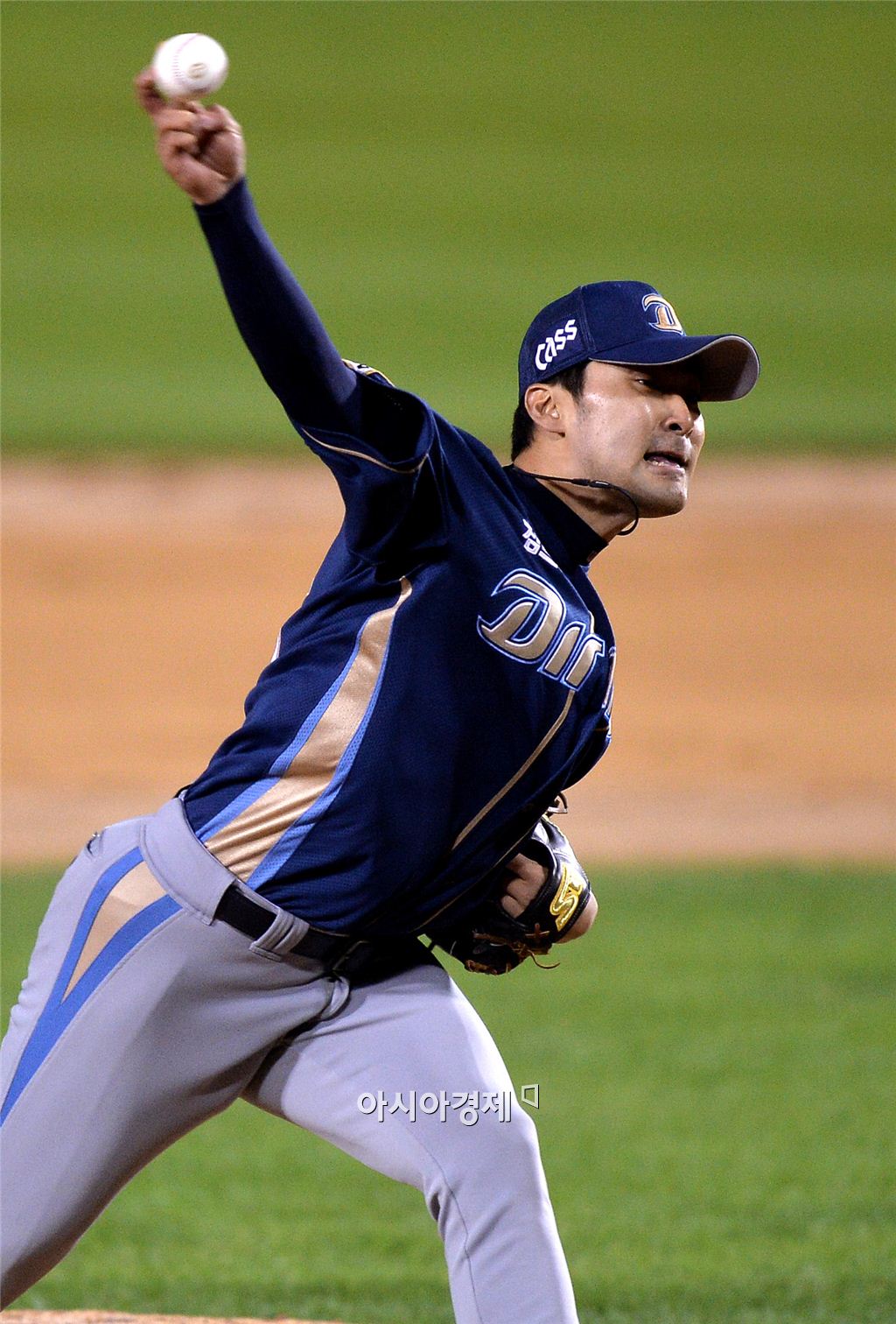 [잠실=아시아경제 김현민 기자] 프로야구 NC 다이노스가 2015 KBO리그 LG 트윈스와의 원정경기에서 7-2로 이기며 4연승을 했다. 9회말 2사 만루에서 NC 마무리 임창민이 역투하고 있다. 김현민 기자 kimhyun81@asiae.co.kr<ⓒ세계를 보는 창 경제를 보는 눈, 아시아경제(www.asiae.co.kr) 무단전재 배포금지>