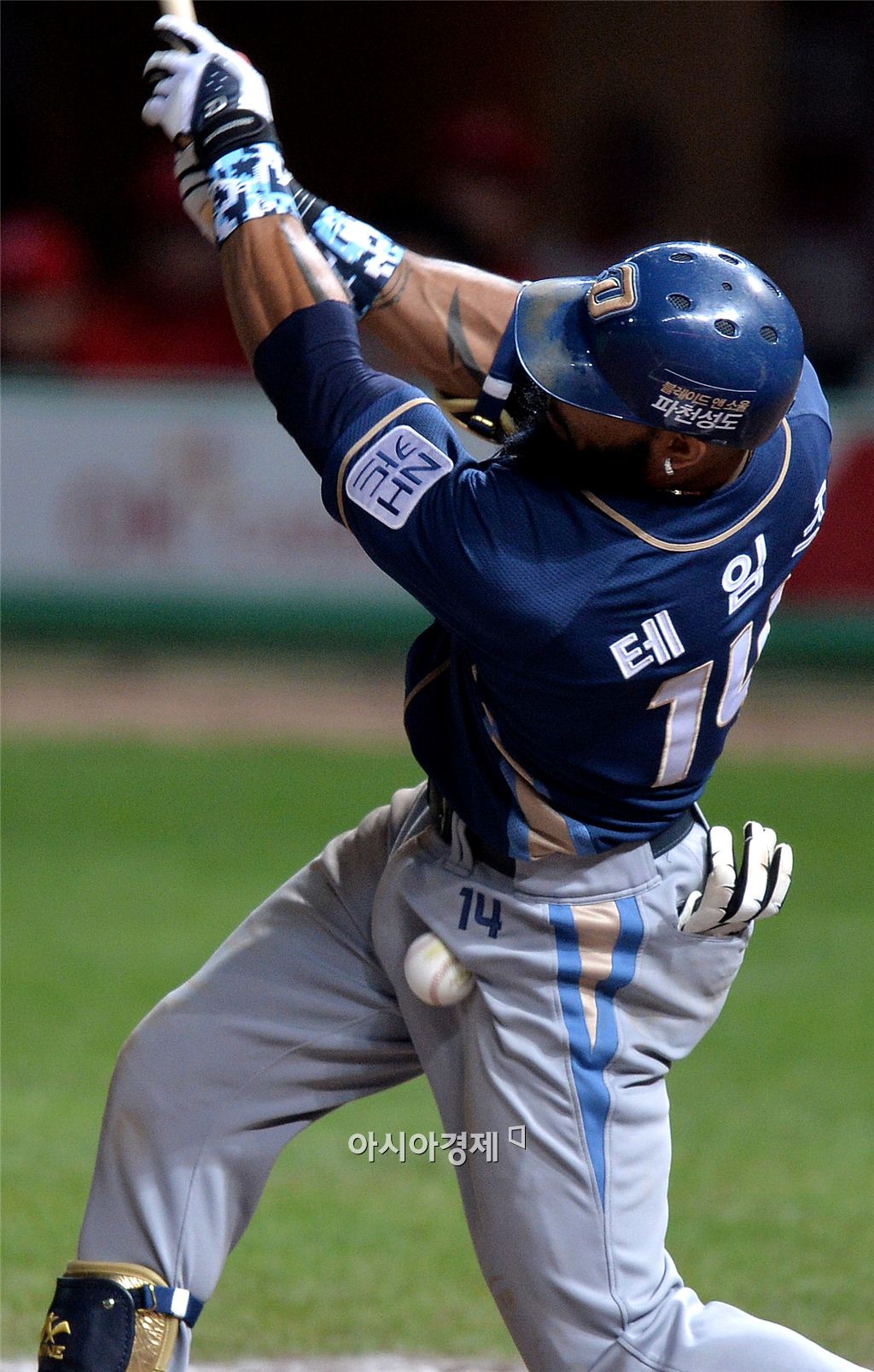 [인천=아시아경제 김현민 기자] 2015 KBO리그 NC 다이노스와 SK 와이번스의 경기가 2일 문학구장에서 열렸다. 6회초 1사 1,3루에서 NC 테임즈가 자신의 파울 타구에 맞고 있다. 김현민 기자 kimhyun81@asiae.co.kr<ⓒ세계를 보는 창 경제를 보는 눈, 아시아경제(www.asiae.co.kr) 무단전재 배포금지>