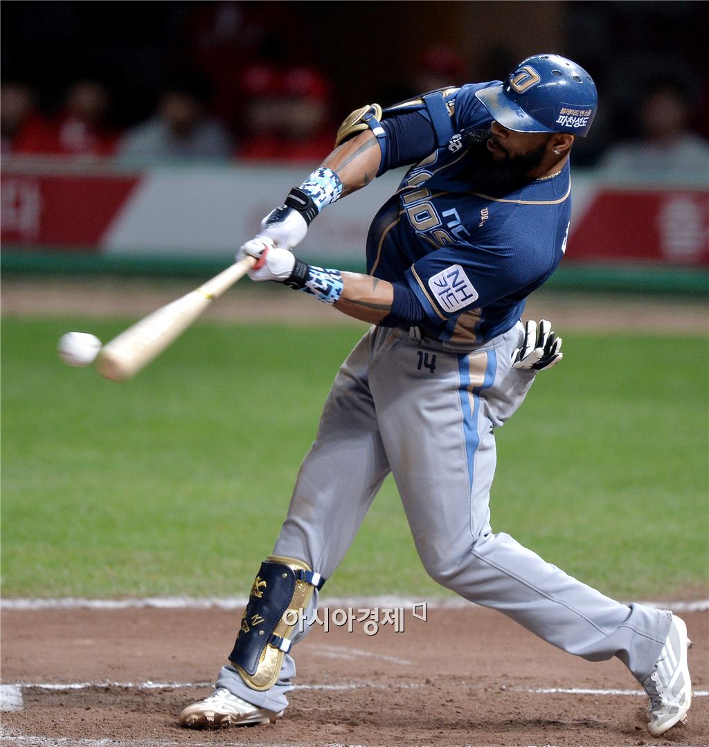 [인천=아시아경제 김현민 기자] 2015 KBO리그 NC 다이노스와 SK 와이번스의 경기가 2일 문학구장에서 열렸다. 6회초 1사 1,3루에서 NC 테임즈가 추가 1타점 1루수 내야 안타를 치고 있다. 김현민 기자 kimhyun81@asiae.co.kr<ⓒ세계를 보는 창 경제를 보는 눈, 아시아경제(www.asiae.co.kr) 무단전재 배포금지>