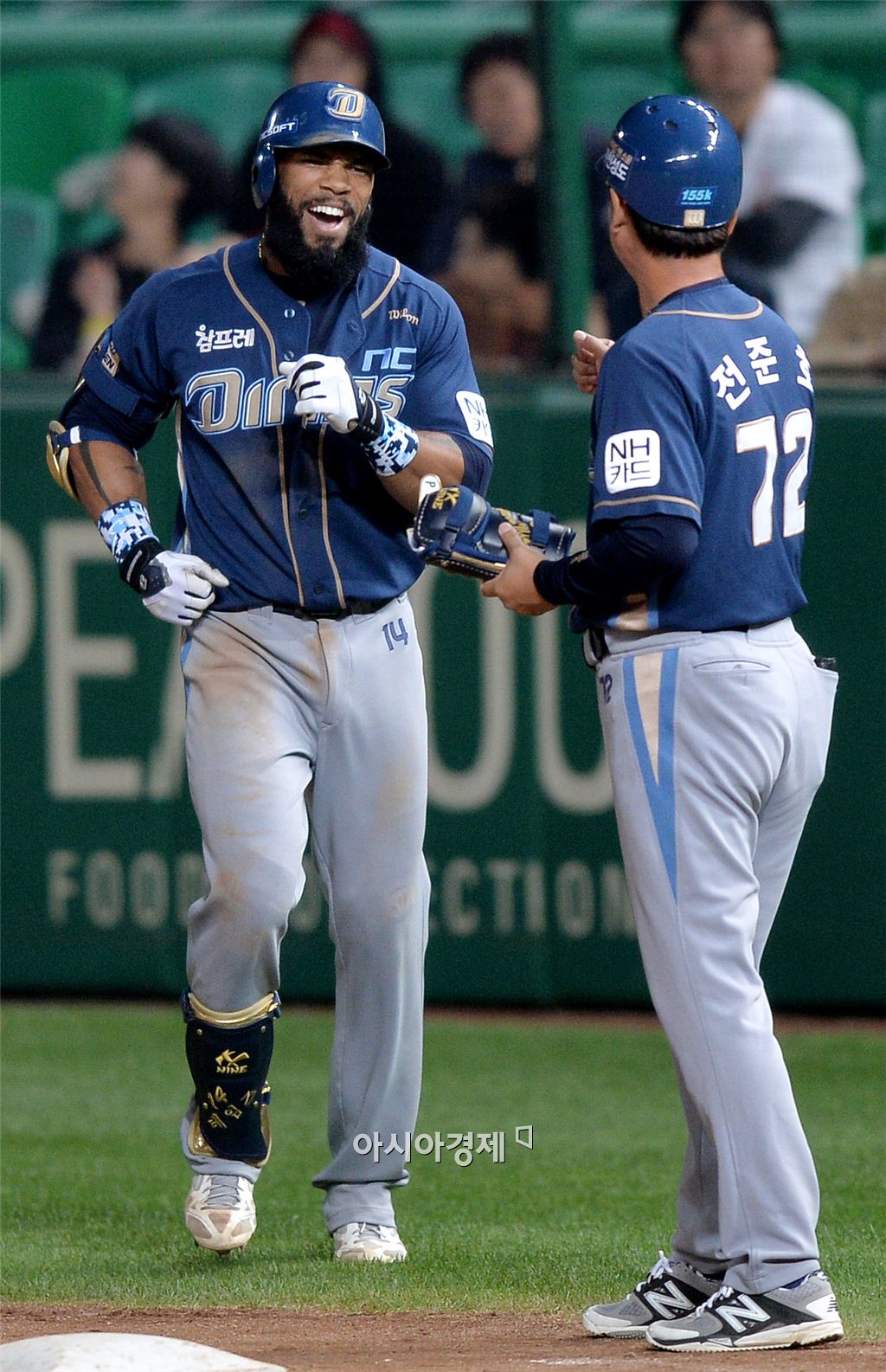 [인천=아시아경제 김현민 기자] 2015 KBO리그 NC 다이노스와 SK 와이번스의 경기가 2일 문학구장에서 열렸다. 6회초 1사 1,3루에서 NC 테임즈가 추가 1타점 1루수 내야 안타를 치고 출루하고 있다. 김현민 기자 kimhyun81@asiae.co.kr<ⓒ세계를 보는 창 경제를 보는 눈, 아시아경제(www.asiae.co.kr) 무단전재 배포금지>