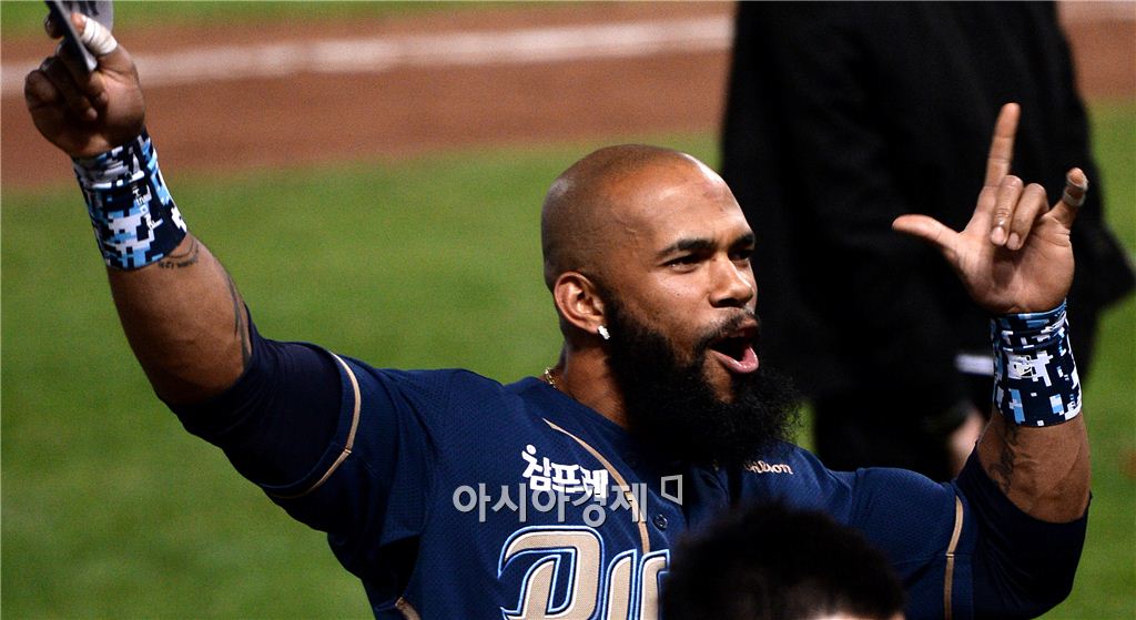 [인천=아시아경제 김현민 기자] 프로야구 NC 다이노스가 2일 인천 문학구장에서 열린 2015 KBO리그 SK 와이번스의 경기에서 9-2로 이기면 5연승을 달렸다. 이날 경기에서 프로야구 최초 40-40을 달성한 테임즈가 경기 후 팬들의 연호에 화답하고 있다. 김현민 기자 kimhyun81@asiae.co.kr<ⓒ세계를 보는 창 경제를 보는 눈, 아시아경제(www.asiae.co.kr) 무단전재 배포금지>