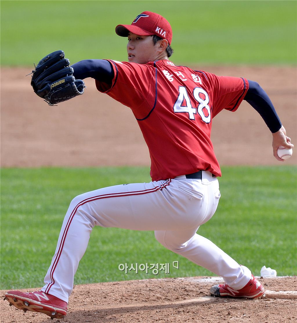 [잠실=아시아경제 김현민 기자] 2015 KBO리그 KIA 타이거즈와 두산 베어스의 경기가 4일 잠실야구장에서 열렸다. KIA 선발투수 홍건희가 역투하고 있다. 김현민 기자 kimhyun81@asiae.co.kr<ⓒ세계를 보는 창 경제를 보는 눈, 아시아경제(www.asiae.co.kr) 무단전재 배포금지>
