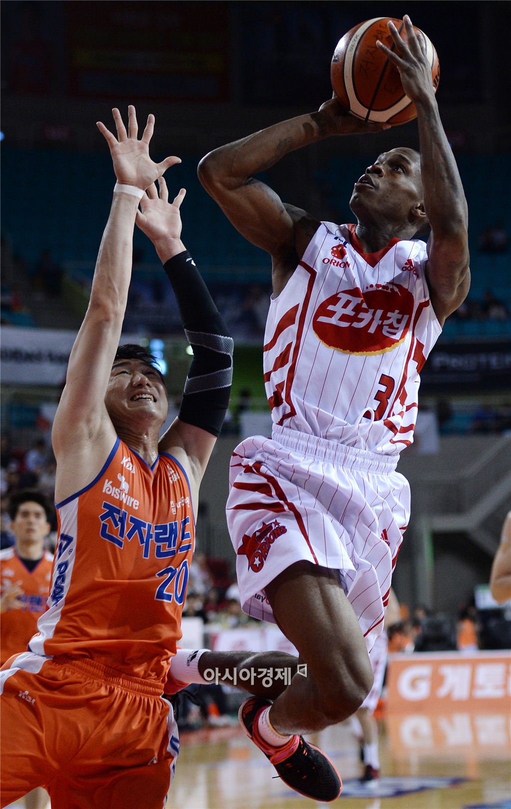 [인천=아시아경제 김현민 기자] 프로농구 인천 전자랜드와 고양 오리온스의 경기가 4일 인천 삼산월드체육관에서 열렸다. 오리온스 잭슨이 상대 정영삼의 수비를 뚫고 공격하고 있다. 김현민 기자 kimhyun81@asiae.co.kr<ⓒ세계를 보는 창 경제를 보는 눈, 아시아경제(www.asiae.co.kr) 무단전재 배포금지>
