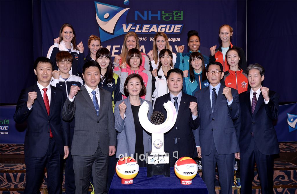 [아시아경제 김현민 기자] 프로배구 V리그 여자부 미디어데이가 5일 서울 청담동 리베라호텔에서 열렸다. 각팀 감독과 선수들이 파이팅을 외치고 있다.김현민 기자 kimhyun81@asiae.co.kr<ⓒ세계를 보는 창 경제를 보는 눈, 아시아경제(www.asiae.co.kr) 무단전재 배포금지>김현민 사진기자 kimhyun81@asiae.co.kr<ⓒ아시아 대표 석간 '아시아경제' (www.newsva.co.kr) 무단전재 배포금지>